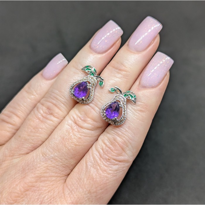 С5504Natural Amethyst 38.0 X 16.0 MM.Вага 4.24 гр.Срібло 925 проби покрите білим золотом.Розмір каміння - 2.5 TO 8.0 X 6.0 MM. Чистота - If To Vvs.Обробка - Unheated.Походження - Brazil...