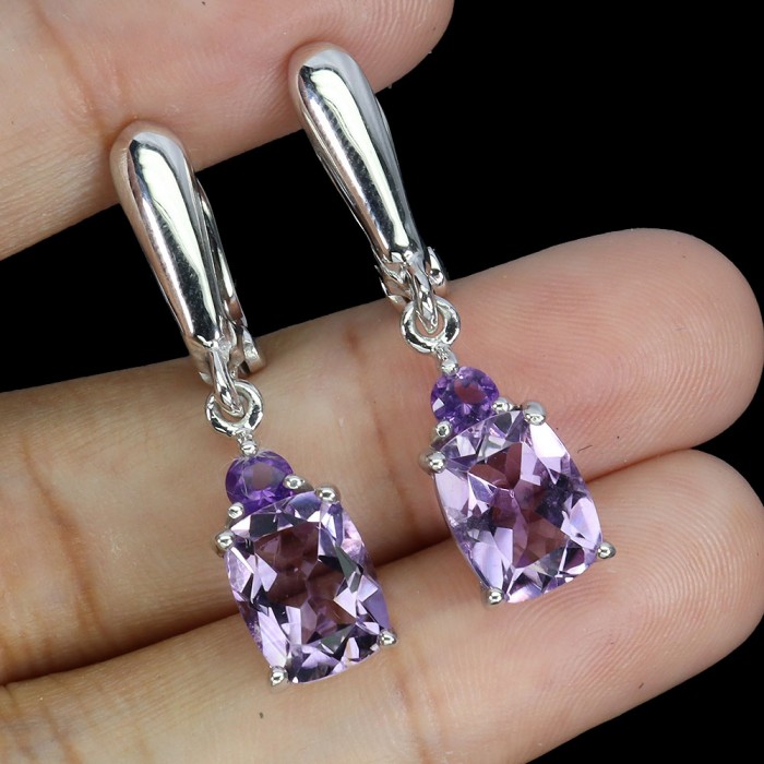 С3266Natural Aquamarine Amethyst Rhodolite 38.0 X 16.0 MM.Вага 5.47 гр.Срібло 925 проби покрите білим золотом.Розмір каміння - 4.0 X 2.0 TO 7.0 X 5.0 MM.Чистота - IF TO VVS.Обробка - UNHEATED.Походження - BRAZIL...