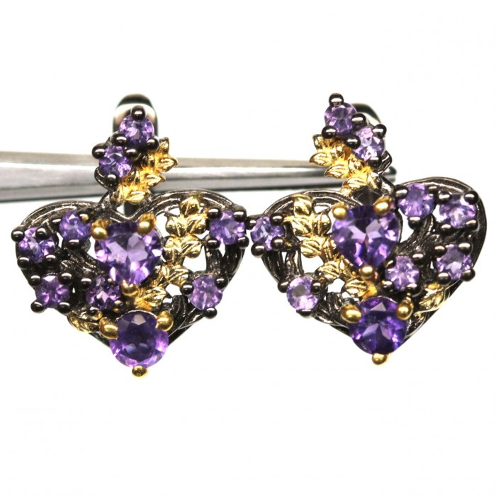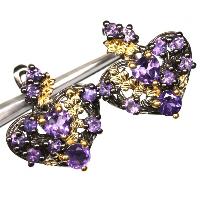 Срібло 925 проби покрите жовитим золотом і чорним родієм.