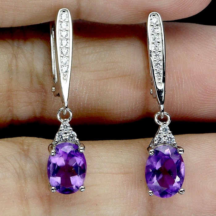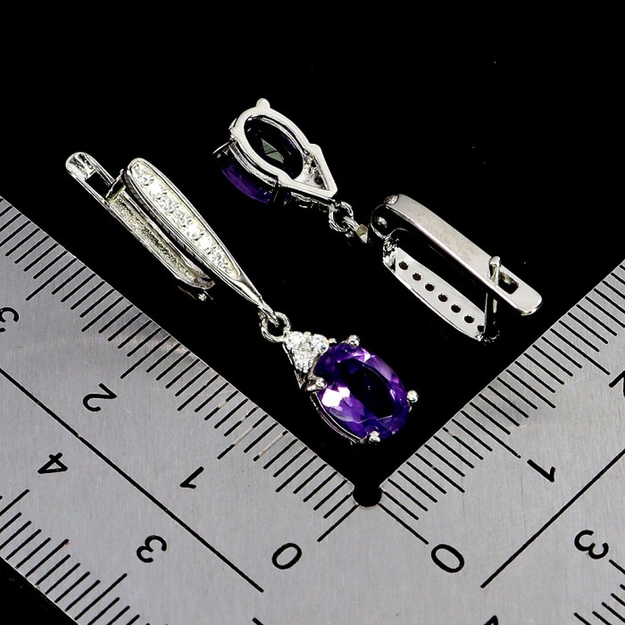 С6755Natural Amethyst Cz 12.0 X 10.0 MM.Вага 3.22 гр.Срібло 925 проби покрите білим золотом.Розмір каміння - 8.0 X 6.0 MM., CZ 1.0 MM.Чистота - If To Vvs.Обробка - Unheated.Походження - Uruguay...