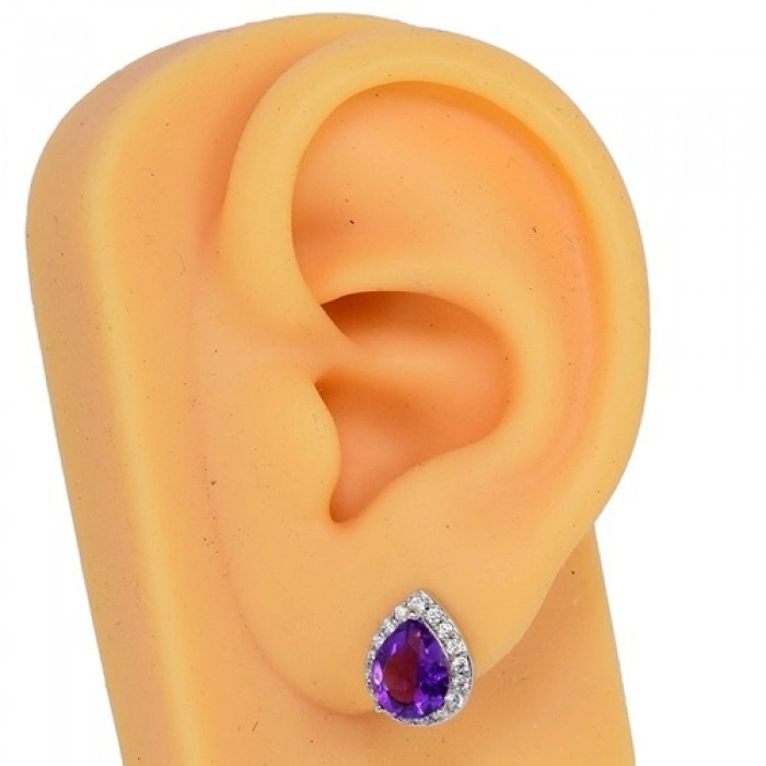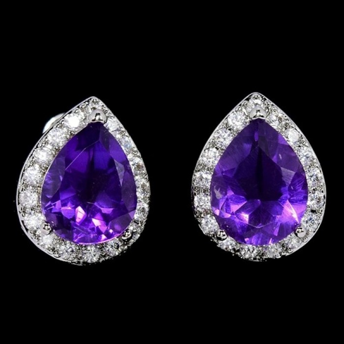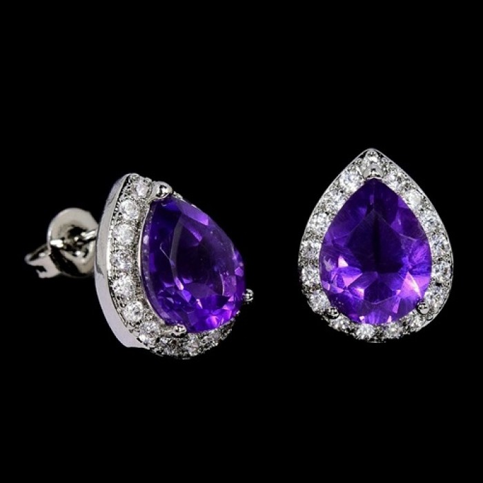 NATURAL AAA PURPLE AMETHYST & WHITE CZ 10 x 12 mm.