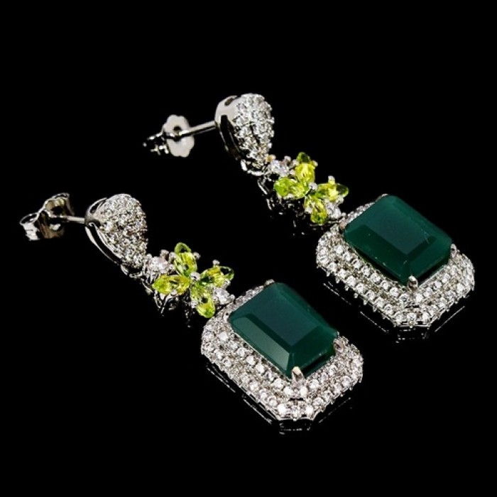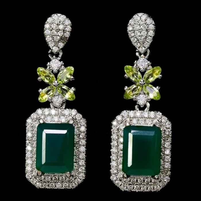 NATURAL AAA GREEN AVENTURINE, PERIDOT & WHITE CZ 11 x 33 mm.