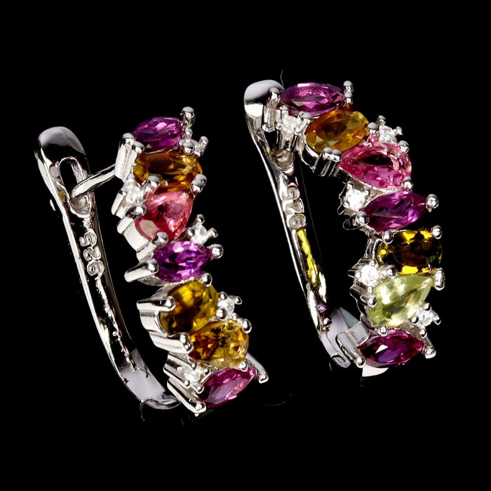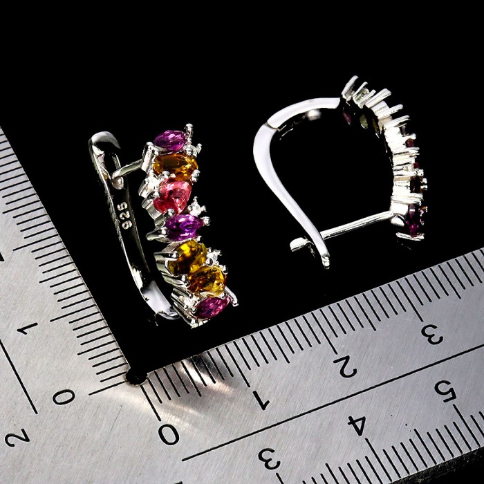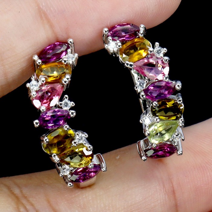 С6383Natural Mozambique Garnet, Chrome Diopside, Rhodolite Garnet 32.0 X 12.0 MM.Вага 5.35 гр.Срібло 925 проби покрите білим золотом.Розмір каміння - 2.0 TO 7.0 X 5.0 MM.Чистота - If To Vvs.Обробка - Unheated.Походження - Africa...