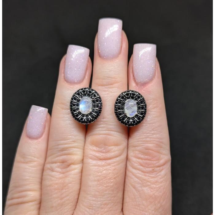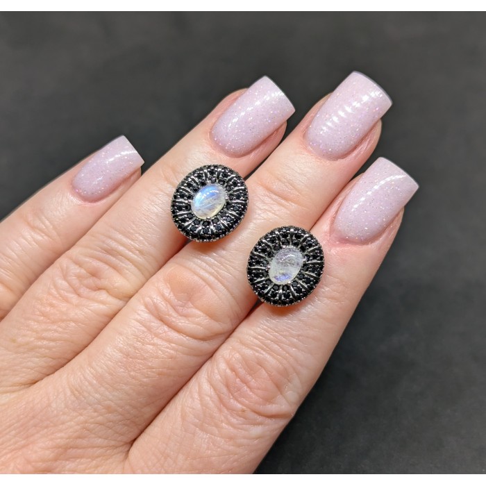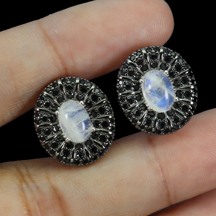 Natural Moonstone, Black Spinel 15.0 X 13.0 MM.