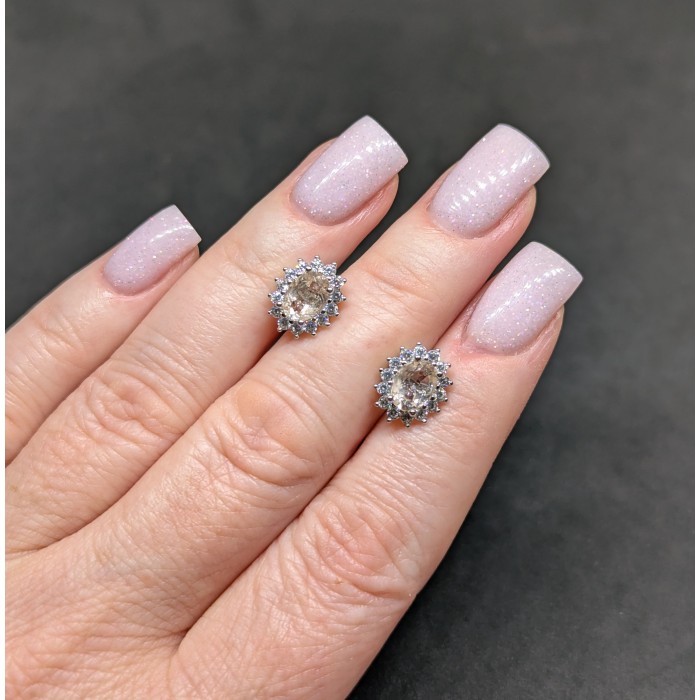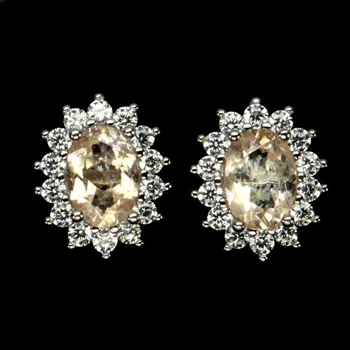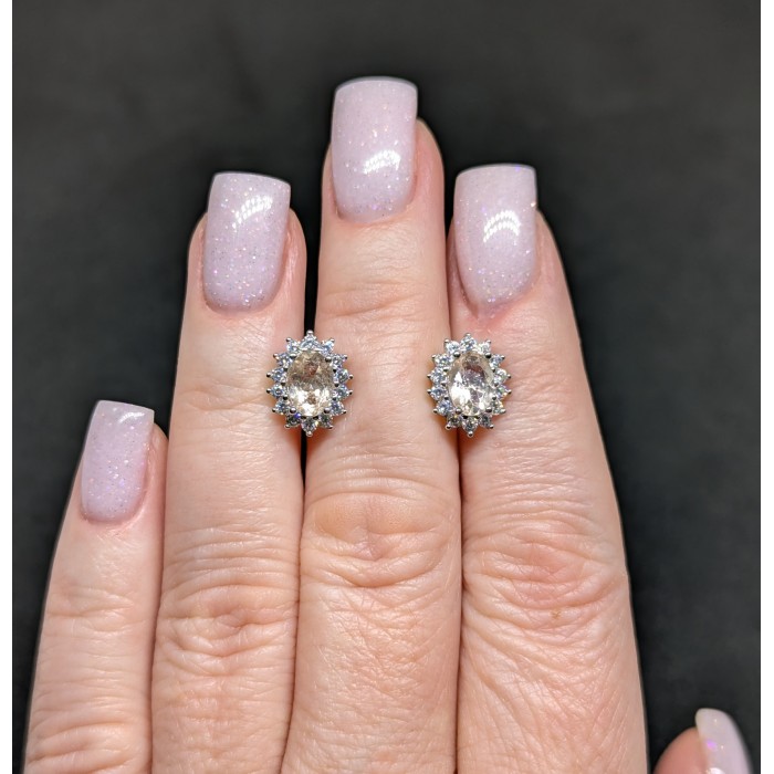 С6412Natural Morganite Cz 9.0 X 7.0 MM.Вага 2.36 гр.Срібло 925 проби покрите білим золотом.Розмір каміння - 7.0 X 5.0 MM., CZ 1.0 MM.Чистота - If To Vvs.Обробка - Unheated.Походження - Madagascar...
