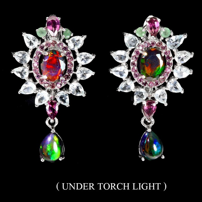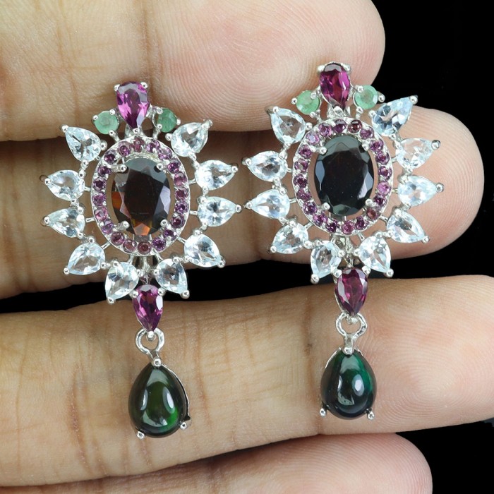 Natural Black Opal, Aquamarine, Emerald, Rhodolite Garnet 41.0 X 20.0 MM.
