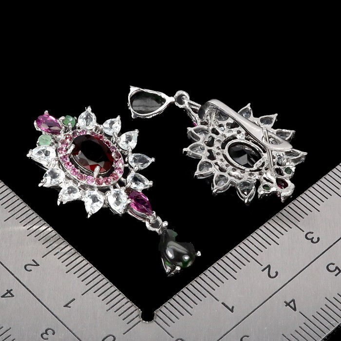 С6400Natural Emerald, Rhodolite Garnet 22.0 X 6.0 MM.Вага 4.72 гр.Срібло 925 проби покрите білим золотом.Розмір каміння - 5.0 X 3.0 MM.Чистота - Transparent.Обробка - Unheated.Походження - Brazil...