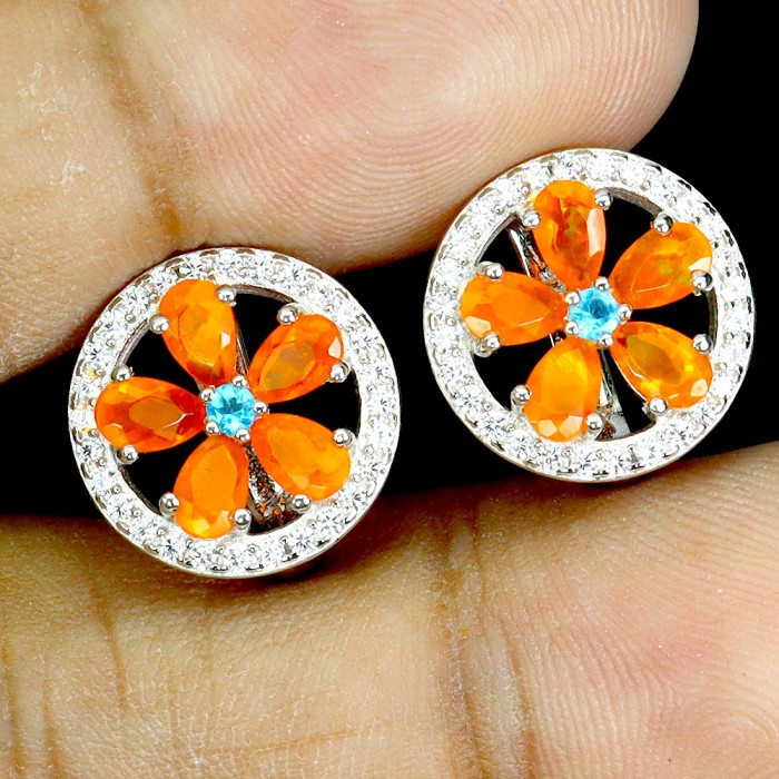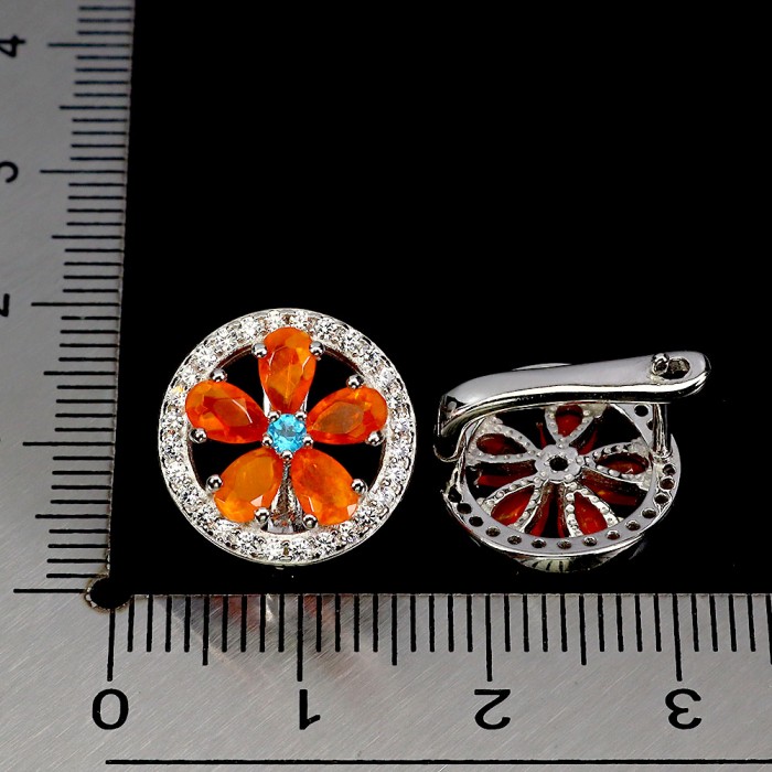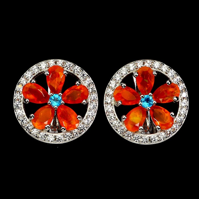 С6123Natural Fire Opal, Sapphire 14.0 X 10.0 MM.Вага 4.1 гр.Срібло 925 проби покрите білим золотом.Розмір каміння - 1.5 TO 8.0 X 6.0 MM.Чистота - If.Обробка - Unheated.Походження - Ethiopia...