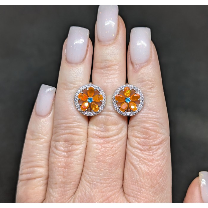С6193Natural Fire Opal, Sapphire 12.0 X 10.0 MM.Вага 4.1 гр.Срібло 925 проби покрите білим золотом.Розмір каміння - 1.5 TO 8.0 X 6.0 MM.Чистота - If.Обробка - Unheated.Походження - Ethiopia...