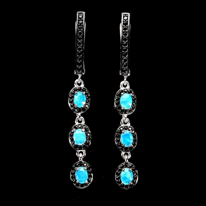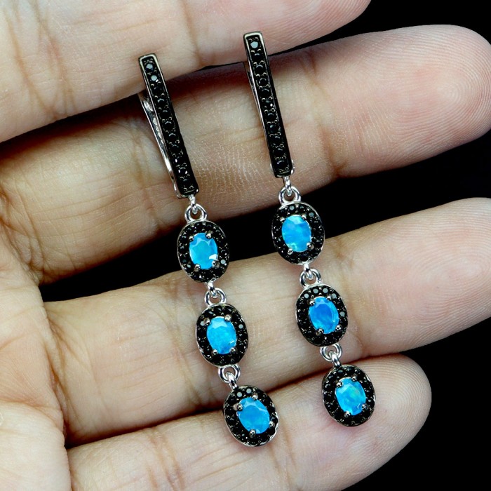 Natural Blue Opal, Black Spinel 45.0 X 6.0 MM.