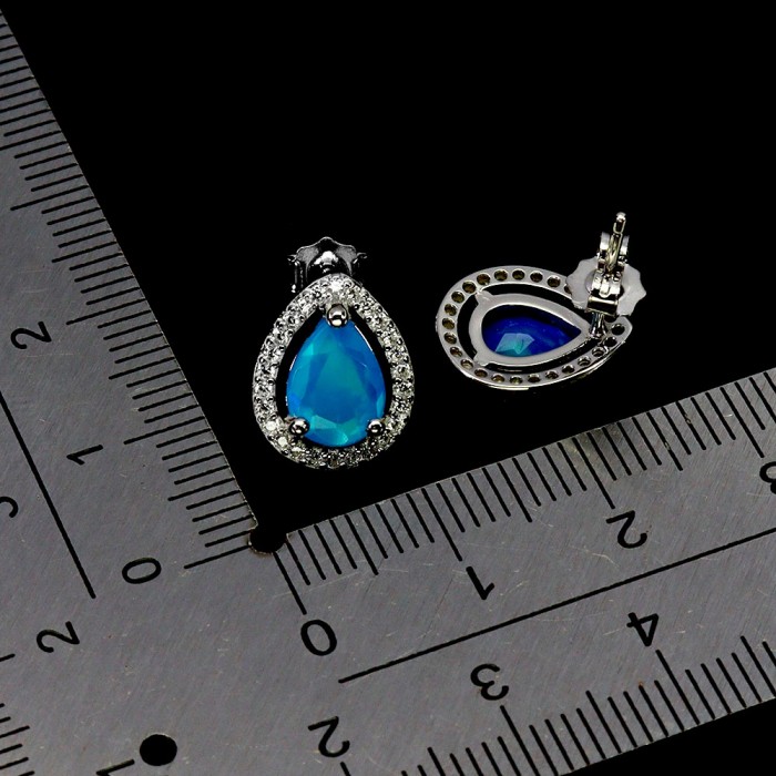 С6295Natural Apatite Cz 31.0 X 12.0 MM.Вага 4.87 гр.Срібло 925 проби покрите білим золотом.Розмір каміння - 10.0 X 7.0 MM., CZ 1.5 MM.Чистота - If To Vvs.Обробка - Unheated.Походження - Africa...