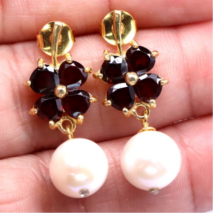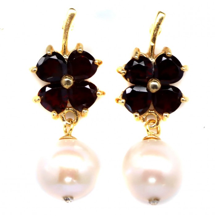 П6554Natural White Pearl, Gatnet & Topaz 16.7 x 35.0 mm.Вага 4,64 гр.Срібло 925 проби покрите жовтим золотом.Розмір каміння - 10.0 x 14.0 - 3.0 mm.Чистота - Opaque.Обробка - Cultured Freshwater.Походження - China...