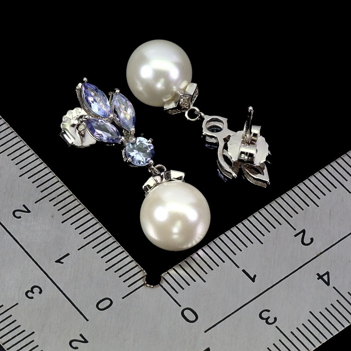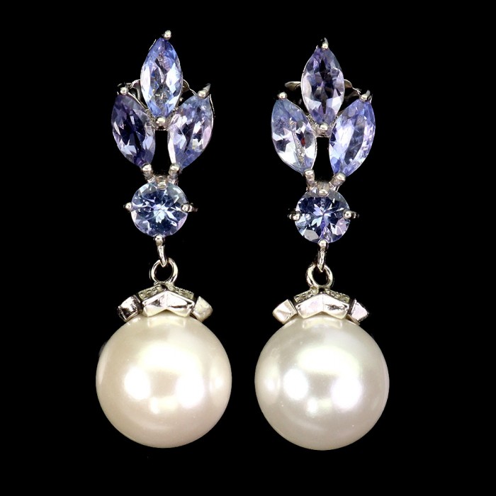 К6408Natural Rhodolite Garnet, Tanzanite 31.0 X 15.0 MM.Розмір 18.2.Вага 7.14 гр.Срібло 925 проби покрите білим золотом.Розмір каміння - 2.5 TO 6.0 X 4.0 MM.Чистота - If To Vvs.Обробка - Unheated.Походження - Africa...