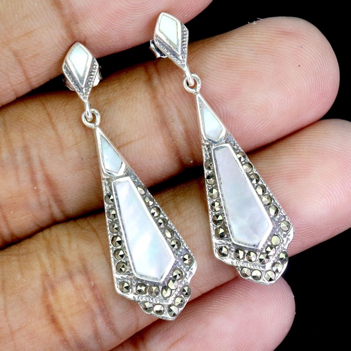 Natural Mother Of Pearl, Marcasite 41.0 X 12.0 MM.
