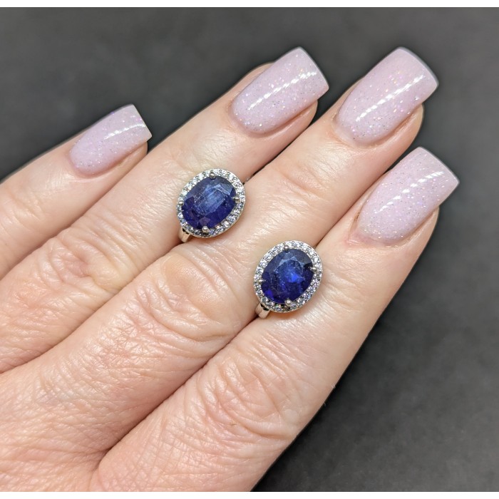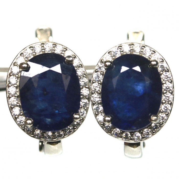 Natural Blue Sapphire & Cubic Zirconia 10.0 x 11.8 mm.