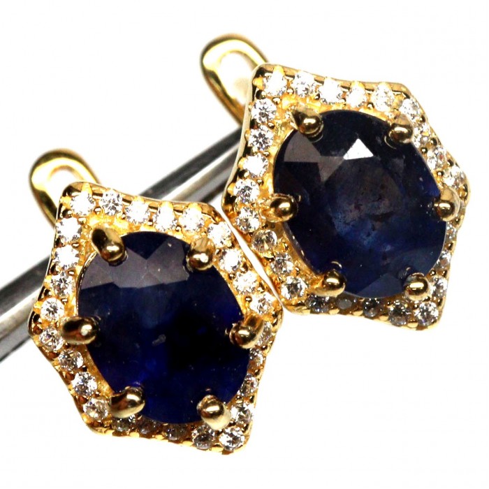 Natural Blue Sapphire & Cubic Zirconia 9.0 x 12.8 mm.