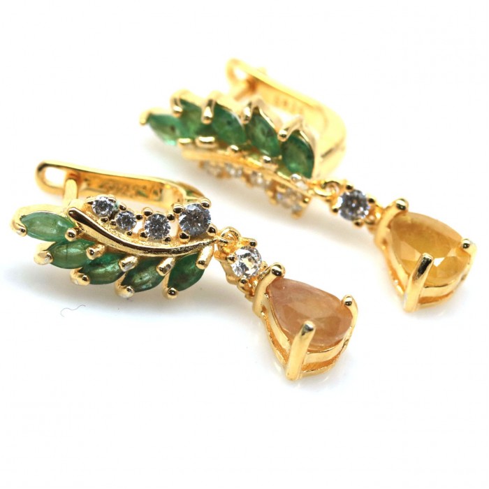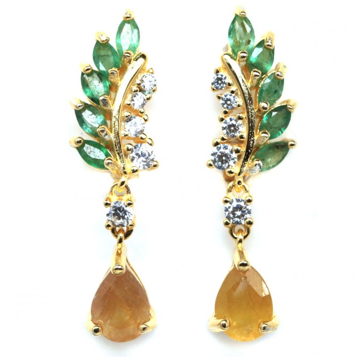 Natural Yellow Sapphire, Emerald & Zircon 7.6 x 28 mm.