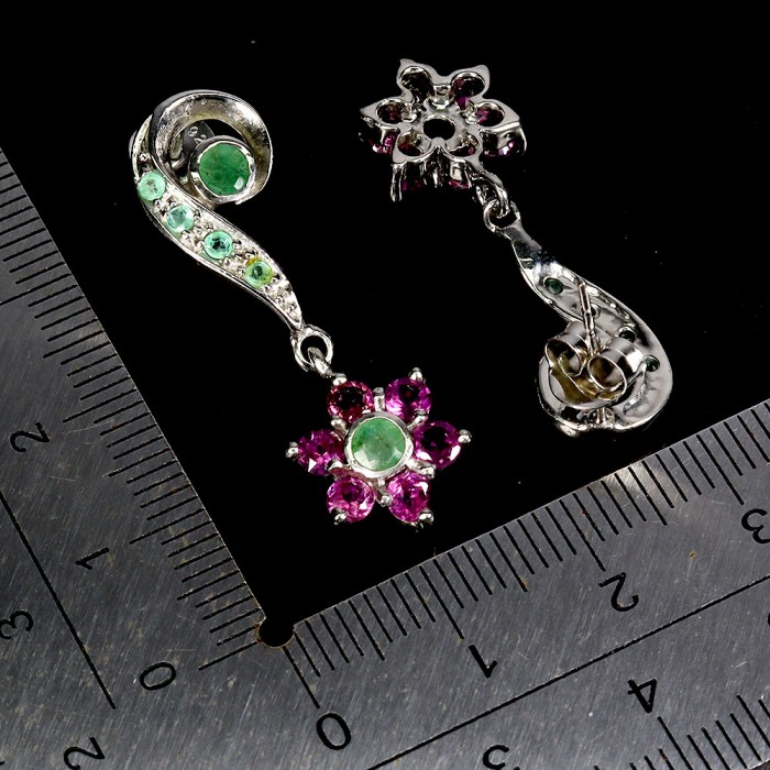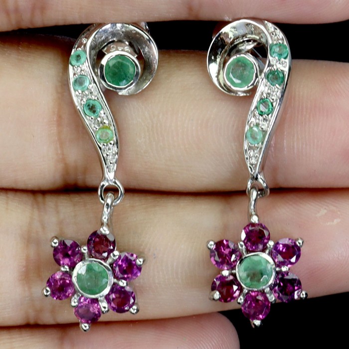 К6685Natural Chrome Diopside, Emerald, Rhodolite Garnet 18.0 X 18.0 MM.Розмір 18.2.Вага 3.22 гр.Срібло 925 проби покрите білим золотом.Розмір каміння - 2.0 TO 6.0 X 4.0 MM.Чистота - If To Vvs.Обробка - Unheated.Походження - Africa...