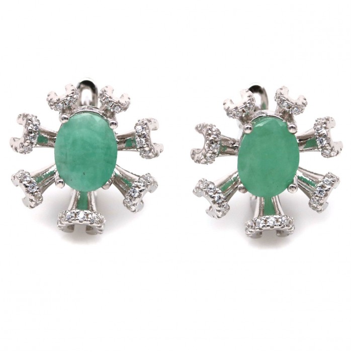 С6295Natural Apatite Cz 31.0 X 12.0 MM.Вага 4.87 гр.Срібло 925 проби покрите білим золотом.Розмір каміння - 10.0 X 7.0 MM., CZ 1.5 MM.Чистота - If To Vvs.Обробка - Unheated.Походження - Africa...