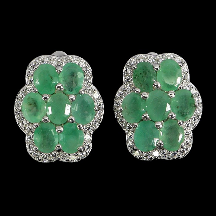 С6418Natural Emerald, Black Spinel 14.0 X 12.0 MM.Вага 4.71 гр.Срібло 925 проби покрите білим золотом.Розмір каміння - 1.0 TO 8.0 X 6.0 MM. Чистота - Transparent.Обробка - Unheated.Походження - Brazil...