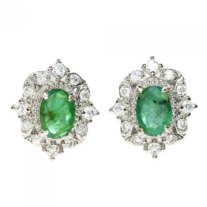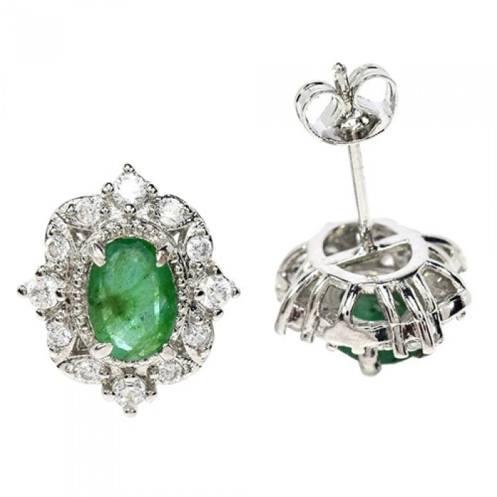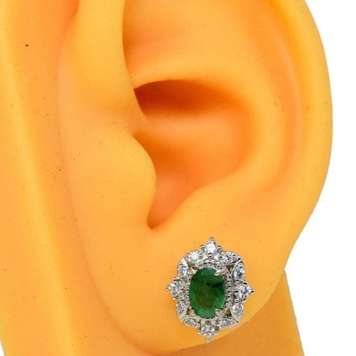 NATURAL AAA GREEN EMERALD & WHITE CZ 12 x 14 mm.