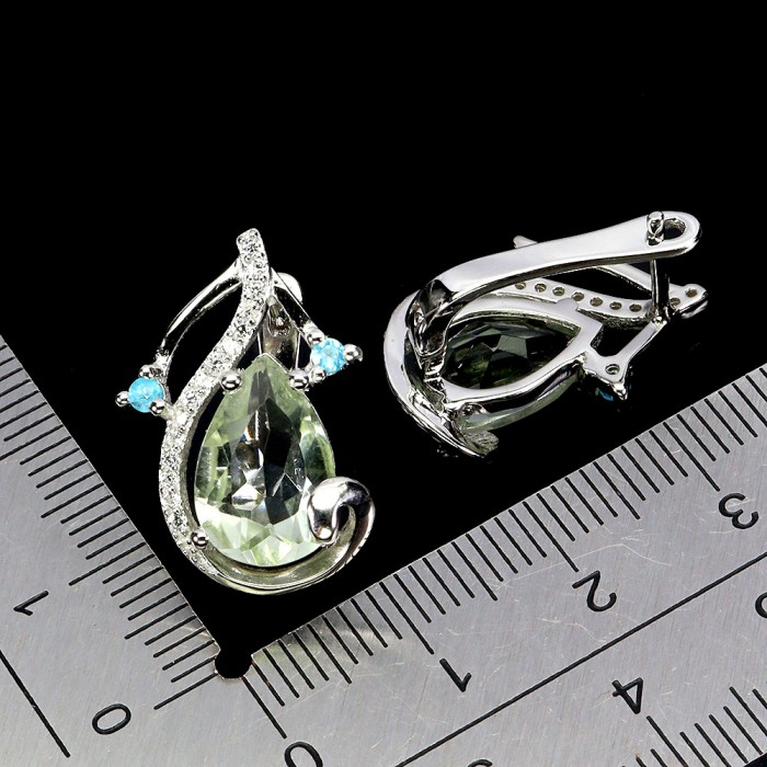 Natural Green Amethyst, Apatite, Cz 21.0 X 14.0 MM.