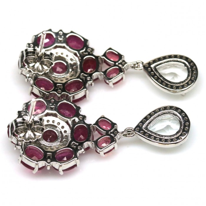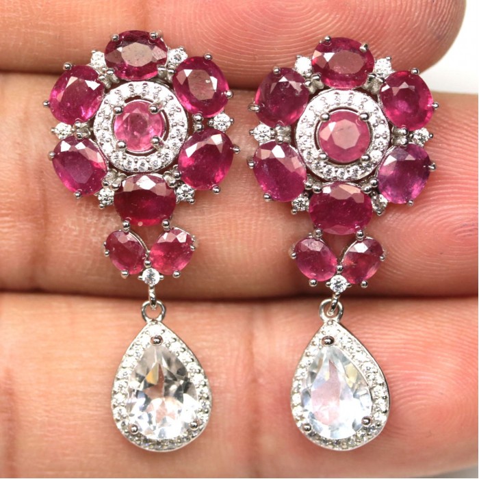 С6443Natural Red Ruby, Topaz & Zircon 12.4 x 29.0 mm.Вага 7,32 гр.Срібло 925 проби покрите білим золотом.Розмір каміння - 6.5x 8.5 -1.1 mm.Чистота - IF TO VVS & TRANSPARENT.Обробка - UNHEATED & HEATED.Походження - BRAZIL & MADAGASCAR...
