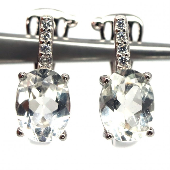 С6182Natural London Blue Topaz Cz 24.0 X 6.0 MM.Вага 3.03 гр.Срібло 925 проби покрите білим золотом.Розмір каміння - 8.0 X 6.0 MM., CZ 1.0 MM.Чистота - If To Vvs.Обробка - Irradiated.Походження - Africa...