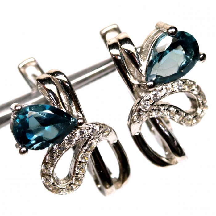 С6445Natural Sky Blue Topaz & White Zircon 11 x 15.6 mm.Вага 5,64 гр.Срібло 925 проби покрите білим золотом.Розмір каміння - 7.0 - 1.2 mm.Чистота - If.Обробка - Irradiated.Походження - Africa...