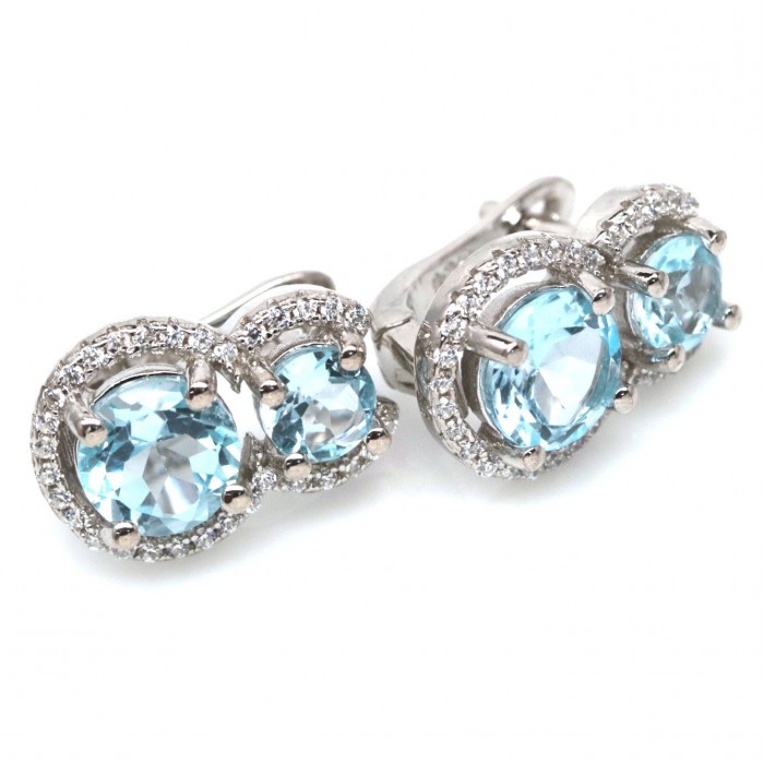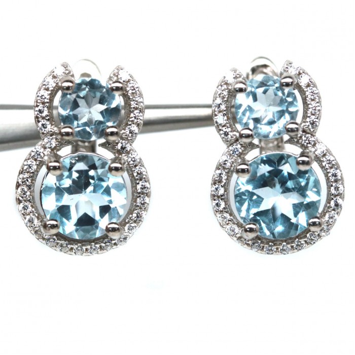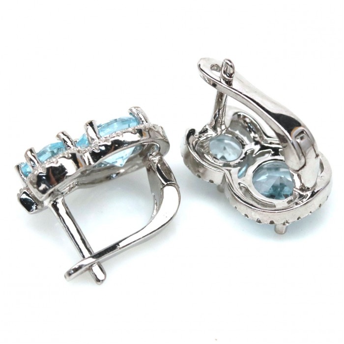 С6447Natural London Blue Topaz & Zircon 10.0 x 16.2 mm.Вага 4,24 гр.Срібло 925 проби покрите білим золотом.Розмір каміння - 5.0 x 7.0 - 1.3 mm.Чистота - If.Обробка - Irradiated.Походження - Africa...