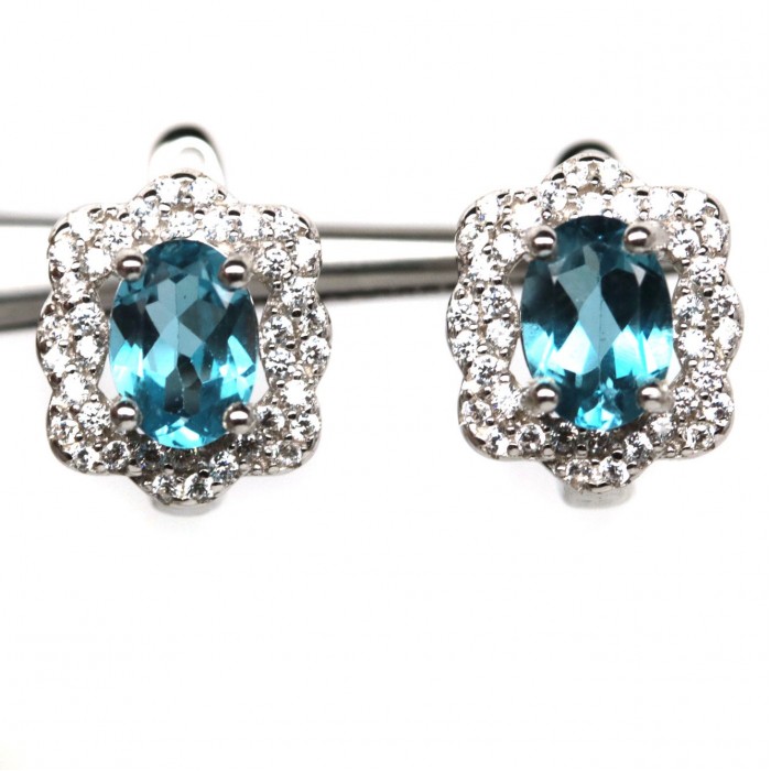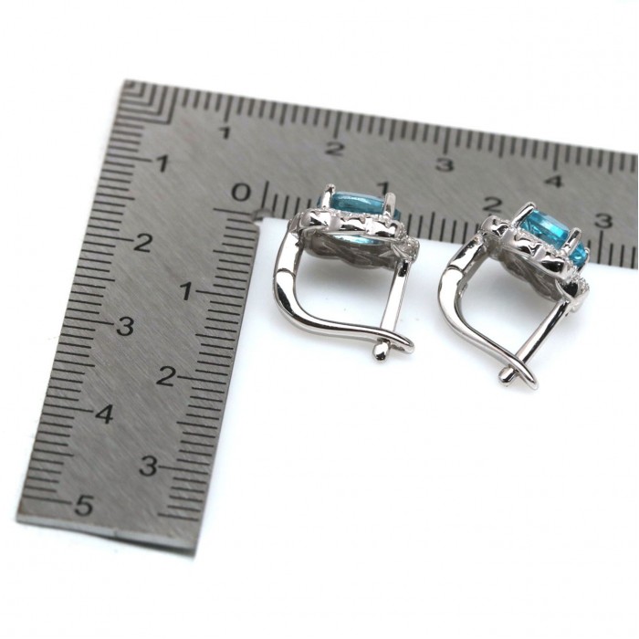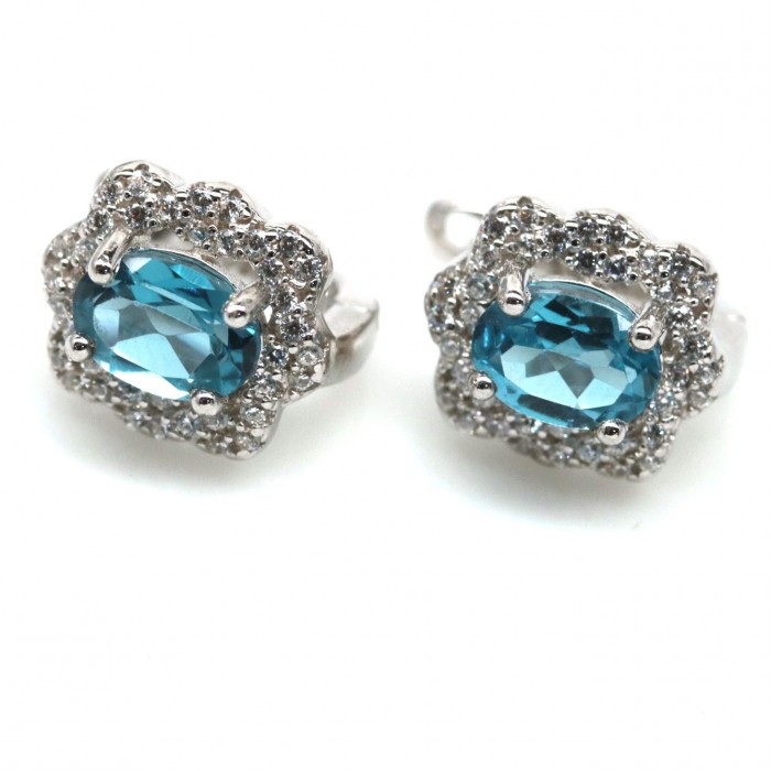 Natural Swiss Blue Topaz & White Cubic Zirconia 10 x 11.4 mm.
