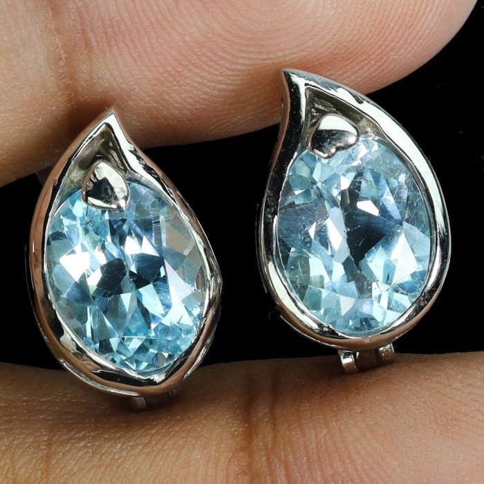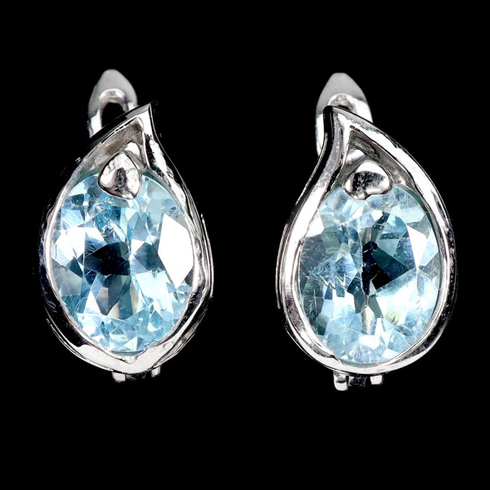 С6659Natural Sky Blue Topaz & White Zircon 12.3 x 17.0 mm.Вага 5,24 гр.Срібло 925 проби покрите білим золотом.Розмір каміння - 6.0 x 8.0 - 1.2 mm.Чистота - If To Vvs.Обробка - Irradiated.Походження - Africa...
