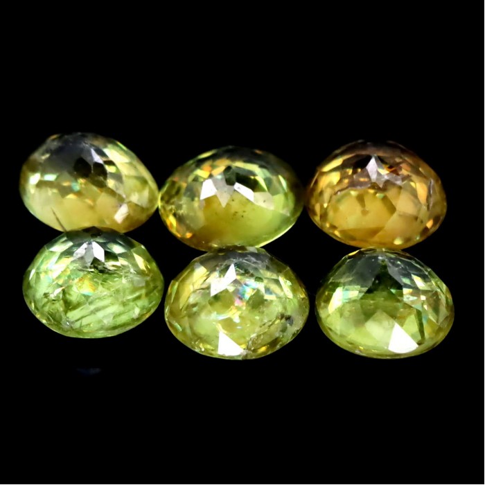 0447Natural Unheated Green Sphene Ceylon Oval Форма - Oval.Вага 1.22 ct.Розмір - 5.7 x 6.8 x 4.3 - 5.6 Х 7.0 x 3.0 mm.Колір - Green.Чистота - SI1 - SI2.Твердість - 5 - 5.5.Обробка - Unheated.Походження - Ceylon...
