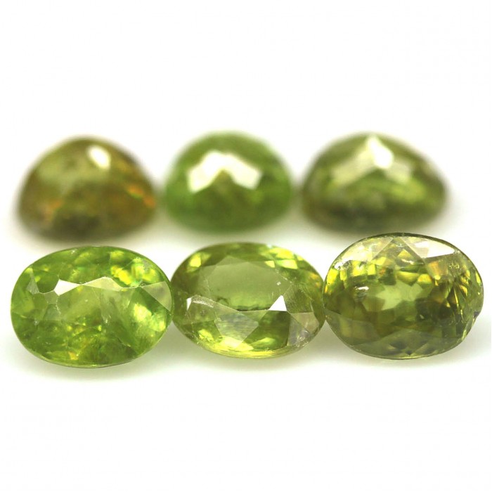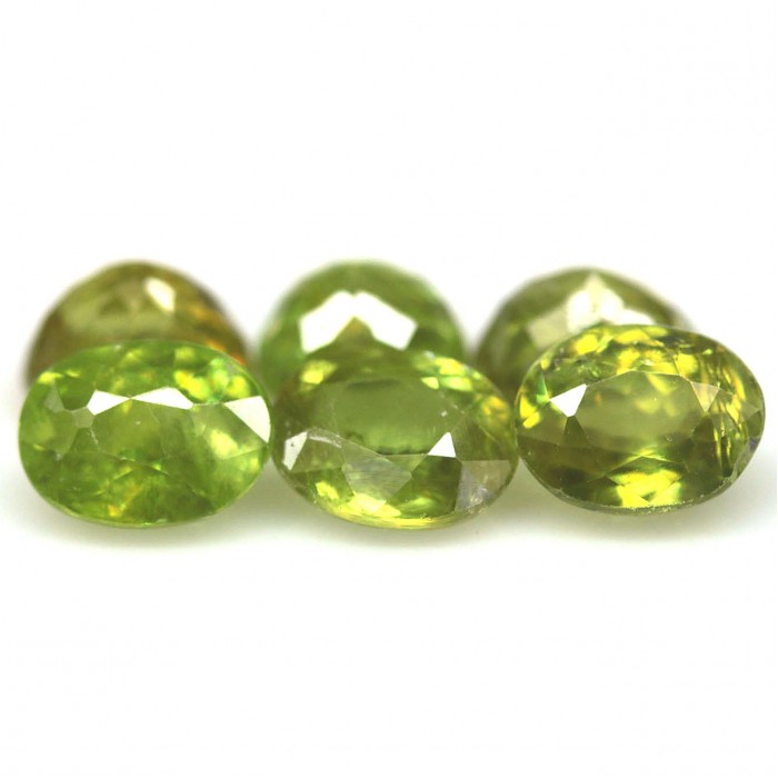 0446Natural Unheated Green Sphene Ceylon Oval Форма - Oval.Вага 1.3 ct.Розмір - 6.3 x 7.0 x 3.4 - 6.2 x 6.7 x 4.0 mm.Колір - Green.Чистота - SI1 - SI2.Твердість - 5 - 5.5.Обробка - Unheated.Походження - Ceylon....