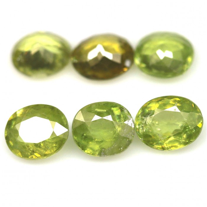 0444Natural Unheated Green Sphene Ceylon Oval Форма - Oval.Вага 1.06 ct.Розмір - 5.1 x 8.2 x 3.4 - 5.0 x 8.0 x 2.6 mm.Колір - Green.Чистота - SI1 - SI2.Твердість - 5 - 5.5.Обробка - Unheated.Походження - Ceylon...