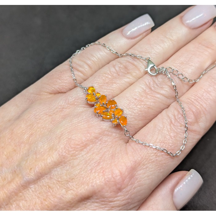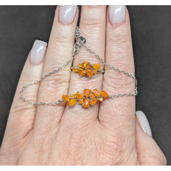 Б2827Natural Orange Opal Cz 200 Х 70.0 X 7.0 MM.Вага 7.65 гр.Срібло 925 проби вкрите білим золотом.Розмір каміння - 6.0 X 4.0 MM., CZ 1.5 MM.Чистота - IF TO VVS.Обробка - CLARITY ENHANCED.Походження - MEXICO...