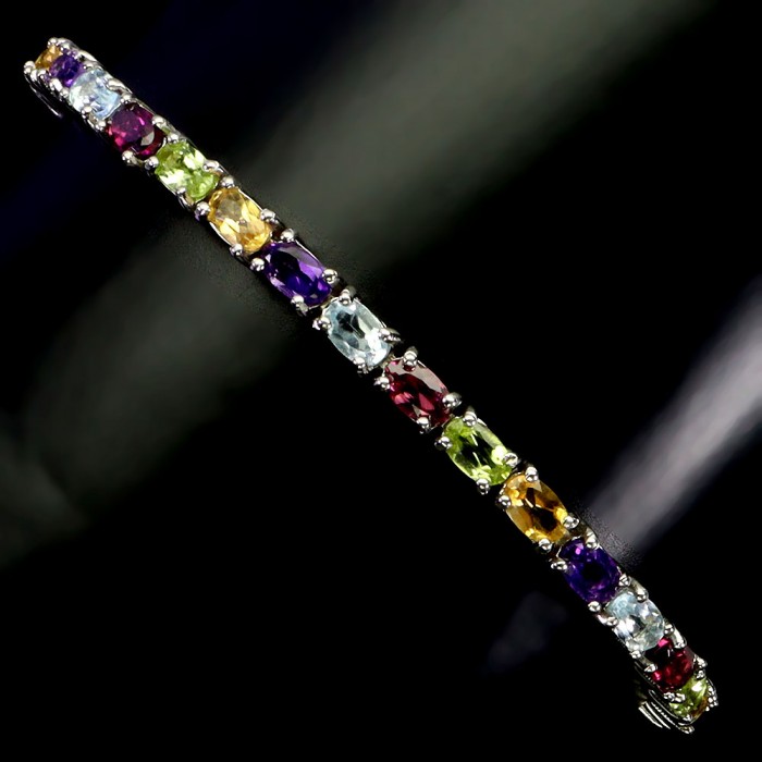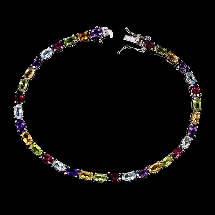 Natural Peridot, Amethyst, Citrine, Rhodolite Garnet, Sky Blue Topaz 175.0 Х 173.0 Х 3.5 ММ.