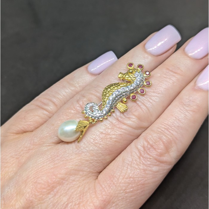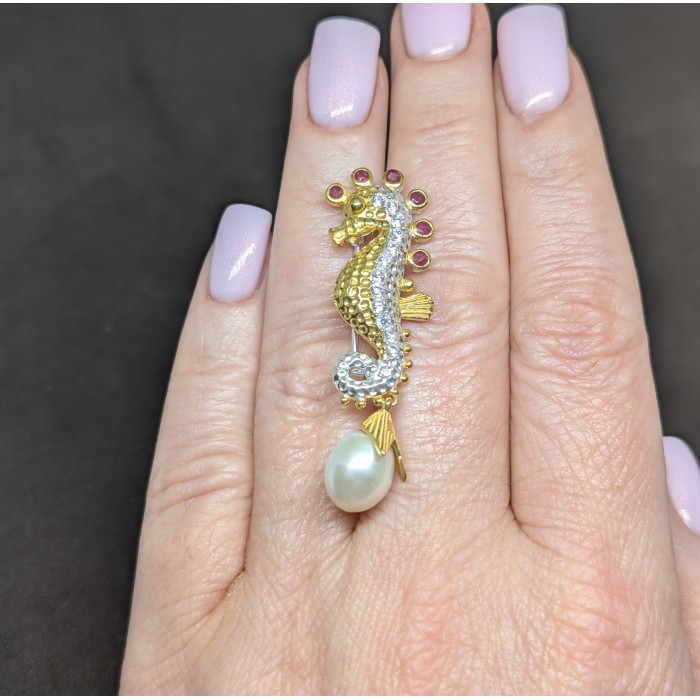 П6385Natural Ruby, Pearl 39.0 X 19.0 MM.Вага 4.5 гр.Срібло 925 проби покрите білим і жовтим золотом.Розмір каміння - 1.5 TO 3.5 MM., PEARL 9.0X 7.0 MM.Чистота - Transparent.Обробка - Heated.Походження - Myanmar...
