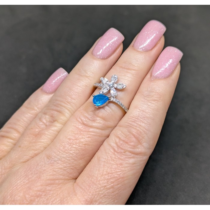 К6027Natural Blue Opal Cz 19.0 X 11.0 MM.Розмір 17.35.Є можливість редагувати розмір.Вага 2.24 гр.Срібло 925 проби покрите білим золотом.Розмір каміння - 7.0 X 5.0 MM., CZ 1.0 TO 2.0 X 1.0 MM. Чистота - If.Обробка - Clarity Enhanced.Походження - Ethiopia...