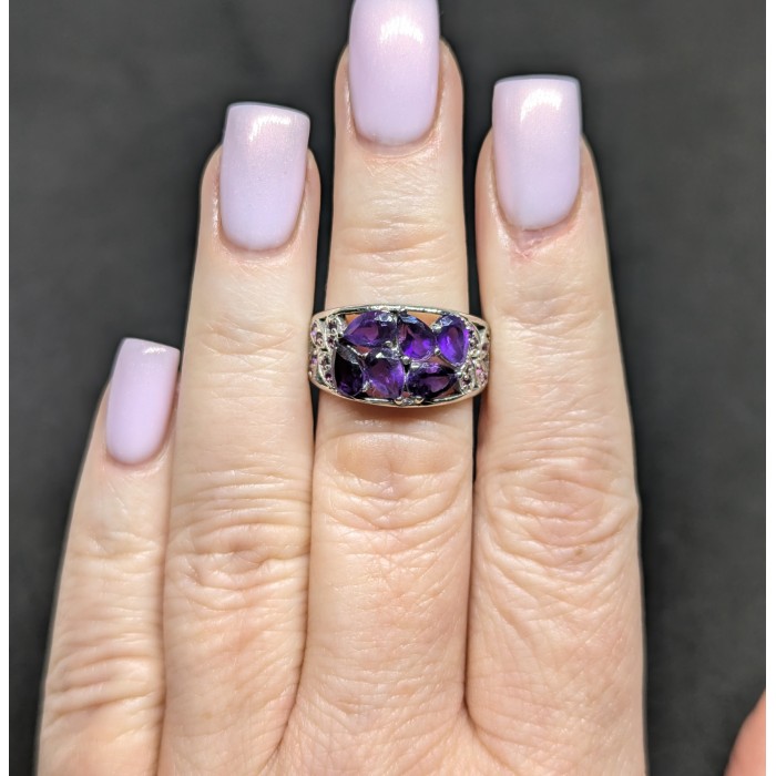 К6731NATURAL AAA PURPLE AMETHYST, RHODOLITE & CZ 20 x 15 mm.Розмір 17.75.Є можливість редагувати розмір.Вага 3.51 гр.Срібло 925 проби покрите білим золотом.Розмір каміння - 14 x 10.9 x 5.8 mm.Чистота - If To Vvs.Обробка - Unheated.Походження - Uruguay...