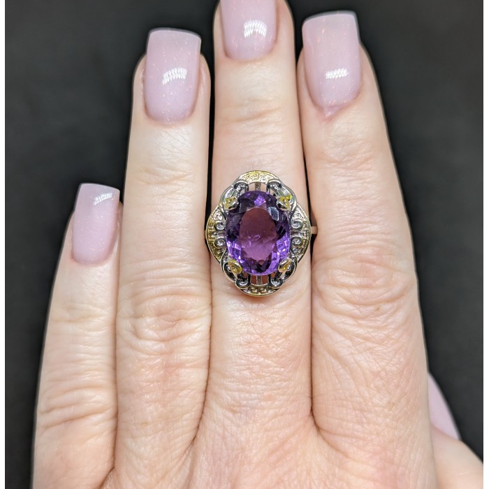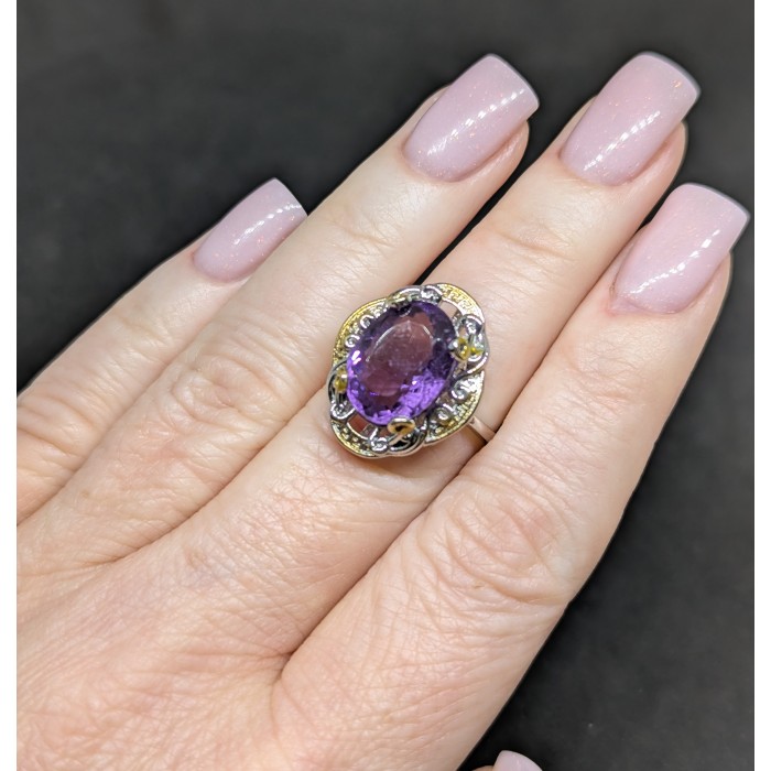 К5026Handmade! Natural Green Amethyst Onyx 21.0 Х 28.0 ММ.Розмір 17.8.Вага 10.07 гр.Срібло 925 проби покрите жовтим золотом і чорним родієм.Розмір каміння - 20x14 ММ.Чистота - IF - VVS.Обробка - UNHEATED.Походження - BRAZIL...