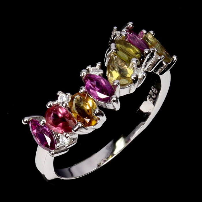 Natural Rhodolite Garnet, Tourmaline, Cz 30.0 X 7.0 MM.