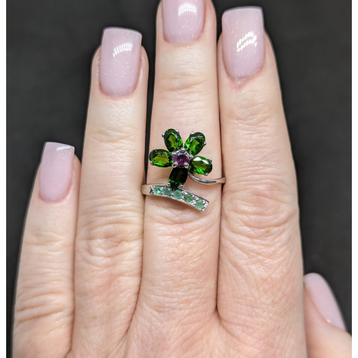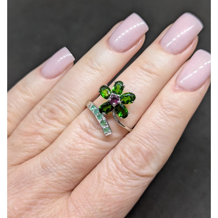 К6683Natural Peridot, Citrine, Emerald 20.0 X 16.0 MM.Розмір 18.Вага 3.83 гр.Срібло 925 проби покрите білим золотом.Розмір каміння - 1.5 TO 6.0 MM. Чистота - If To Vvs.Обробка - Unheated.Походження - Pakistan...