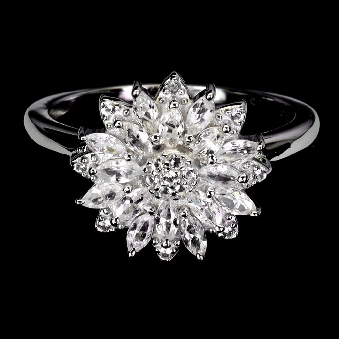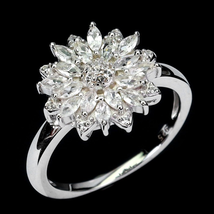 К6398Natural White Sapphire 17.0 X 8.0 MM.Розмір 16.5.Вага 1.7 гр.Срібло 925 проби покрите білим золотом.Розмір каміння - 1.0 TO 3.0 X 2.0 MM.Чистота - If.Обробка - Heated.Походження - Sri Lanka...