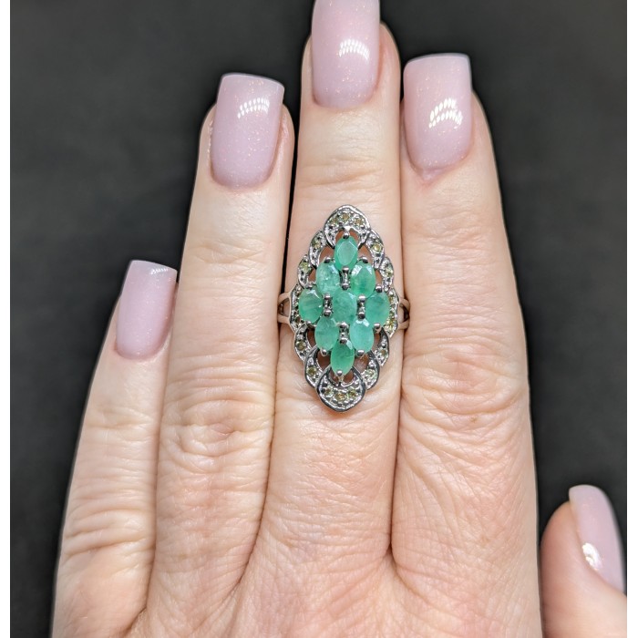К5390Natural Peridot, Emerald, Tourmaline 23.0 X 23.0 MM.Розмір 17.75.Вага 6.69 гр.Срібло 925 проби покрите білим золотом.Розмір каміння - 1.0 TO 6.0 X 3.0 MM.Чистота - If To Vvs.Обробка - Unheated.Походження - Pakistan...