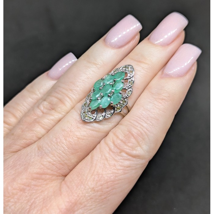 К6628Natural Emerald, Sapphire 20.0 X 11.0 MM.Розмір 18.Вага 4.67 гр.Срібло 925 проби покрите білим золотом.Розмір каміння - 1.0 TO 6.0 X 4.0 MM.Чистота - Transparent.Обробка - Unheated.Походження - Brazil...