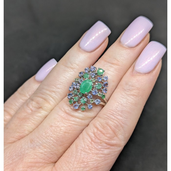 К6581Natural Emerald 18.0 X 14.0 MM.Розмір 18.2.Вага 3.34 гр.Срібло 925 проби покрите білим золотом.Розмір каміння - 5.0 X 3.0 TO 6.0 X 4.0 MM.Чистота - Transparent.Обробка - Unheated.Походження - Brazil...