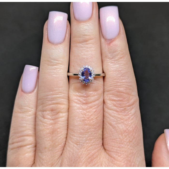 К6544Natural Tanzanite Cz 9.0 X 7.0 MM.Розмір 18.2.Вага 2.07 гр.Срібло 925 проби покрите білим золотом.Розмір каміння - 1.0 TO 7.0 X 5.0 MM.Чистота - Transparent.Обробка - Unheated.Походження - Tanzania - Africa...