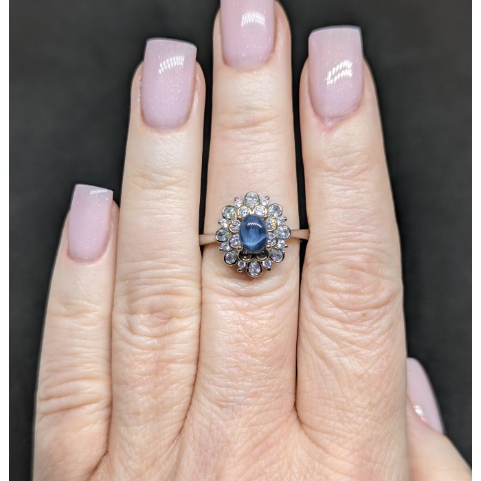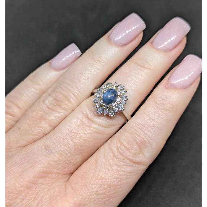 NATURAL AAA 6 RAYS STAR BLUE SAPPHIRE & CZ 14 x 15 mm.