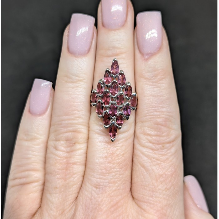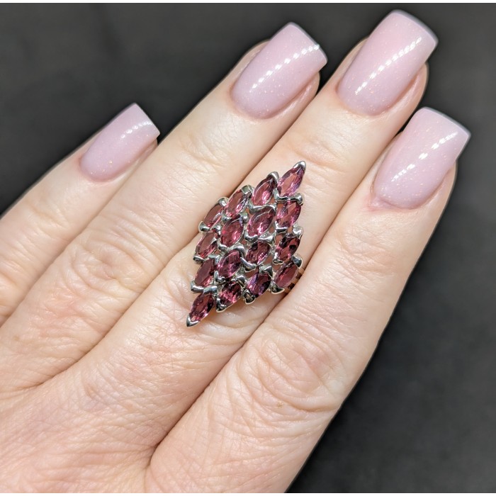 К2891NATURAL AAA GREEN TSAVORITE GARNET 11 X 9 mm.Розмір 16.7.Вага 1.52 гр.Срібло 925 проби покрите рожевим золотом.Розмір каміння - 2 mm.Чистота - IF TO VVS.Обробка - UNHEATED.Походження - KENYA...